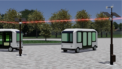 物流業界で深刻化するドライバー不足や燃費改善などの課題解決に向け、2016年にスタートしたトラックの後続車無人隊列走行の実現を目指した研究開発・実証事業。豊田通商株式会社が経済産業省および国土交通省から受託し、三技協は2017年から車両間の光通信機を担当しました。当社製品LED Backhaul®の光無線通信技術をベースに改良を重ね、車間通信システムとして提供しています。