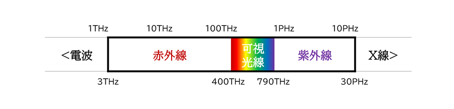 どちらも、光速で伝搬し、質量がなく、エネルギーを伝達できます。光は非常に高い周波数の電波であり、その一部は目に見えるため「可視光線」と呼ばれ、それ以外にも人間の眼に波見えない「赤外線」や「紫外線」があり、これらをひっくるめて一般的に「光」と呼ばれています。物理的には同じ性質の光と電波ですが、法律的には全く異なります。電波法では 周波数3THz以下の電磁波を「電波」と定義しています。そのため、3THz以上の電磁波は電波ではなく法律的には「光」とされます。前述の様に電波には厳しいルールが課せられていますが、光にはほぼルールがありません。精々あるのは、アイセーフティという目の安全規格ぐらい。そもそも、ルールがないのは当然とも言えます。電波のルールは通信の干渉を防ぐために存在しています。しかし、光には、電波が発見される前から、無線通信が行われる前から、太陽、火、電灯など強力な「電磁波」を発生する装置(?)が存在していました。いまさら、どうやって太陽や火や電灯を規制できるというのでしょうか?