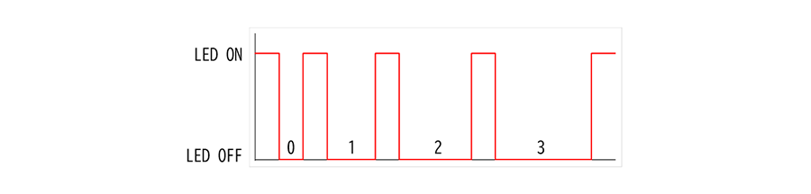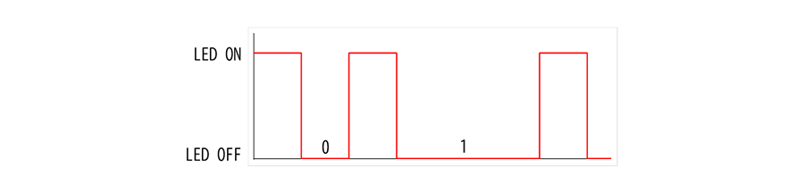 - 実際には、OFFの時間が長くなるように1が多くなるように信号を設計します。