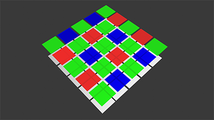 一方、光無線通信の受信側を考えてみます。光無線通信の受信側は、ほぼフォトダイオード(PD)か、それに準ずる装置で構成されます。PDは、光電効果により光のエネルギー(=受信電力)を取得する装置です。PDによって得意とする周波数がある、いわゆる周波数特性といったものは存在しますが、周波数を感知することはできません。CCDやCMOSなどのカメラセンサーは色を取得しているように見えます。しかし、CCDもCMOSも中身は小さなPDの集合体です。カメラセンサーの1画素にあたる「3つの小さなPD」に赤、緑、青それぞれのカラーフィルタを掛けることにより、赤色、緑色、青色の光の強さのみを測定しています。つまり、微細な色を再現しているように見えるカメラも、精々赤、緑、青のような「ざっくりとした」周波数の区分けで受信しているだけで、電波のように正確に周波数単位で受光している訳ではありません。プリズムや回折格子等での分光も可能ですが、機器に精密さ(=高額)を必要とする割りには結局は電波レベルからみれば「ざっくりとした色分け」程度しか分解できません。つまり現在の技術ですと、光無線通信では電波のように周波数を特定して受信をすることはできない[1]と言えるでしょう。