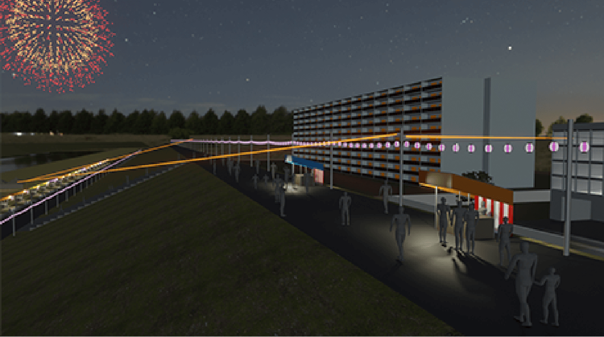 専⾨知識が無くても簡単に設置できます。設置と撤去を繰り返すイベント会場で、監視カメラ映像の伝送路としての活用に適しています。