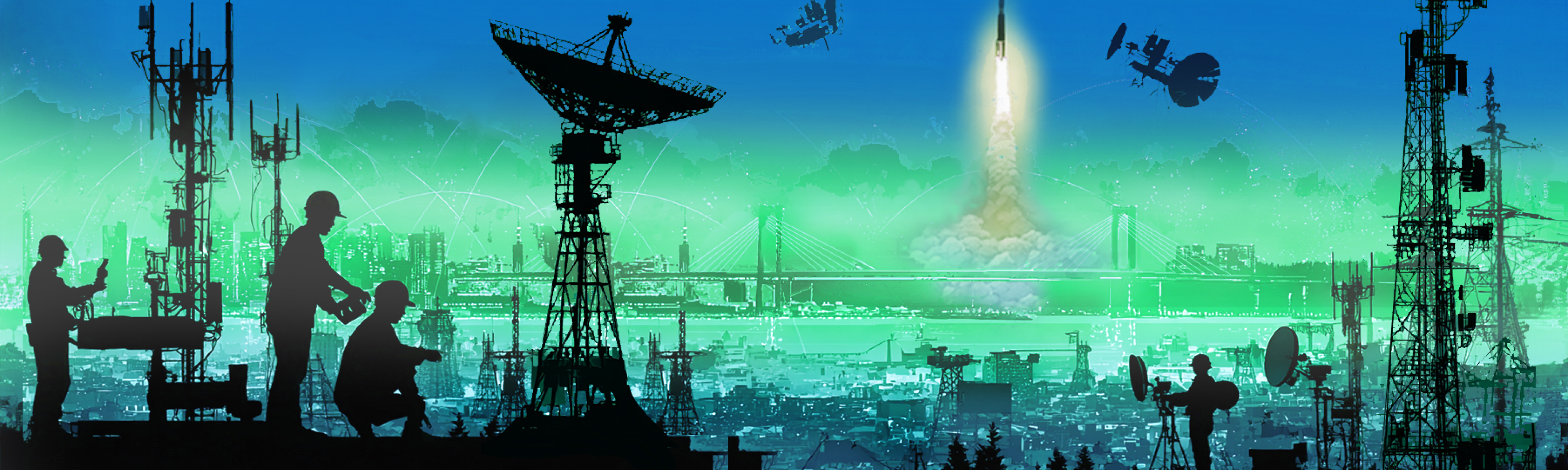 高度な大気圏外との通信でもシステムインテグレーションを実施します。お客さまの要求仕様に適合した通信機器、アンテナ等付帯設備の調達、シェルタ設置なども実施。