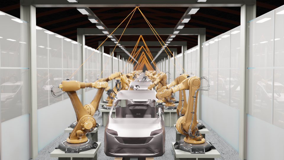 工場は、通信している機器が密集しています。このような状況でWi-Fiで無線化は非常に難しいものです。アクセスポイント(AP)の設置を間違えると干渉が多く発生し、接続もままならなくなります。衝突も多く発生し、大きな遅延が発生する可能性も高くなります。ここをLi-Fiに置き換えると、機器が密集している状況でも安定した通信が可能となります。また、工場では何よりセキュリティが重要視されます。Wi-Fiですと、電波が工場外に漏れ出てそこから不正アクセスされる可能性がありますが、Li-Fiであれば遮光することで一切信号が外に出なくなりますから、不正アクセスを試みることすらできません。