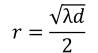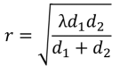 このフレネル半径は、比較的簡単な計算で出すことができます。詳しい計算の過程は近似とかが入るため説明が大変なので省きますが、フレネル半径(r)を求める式はこの様になっています。