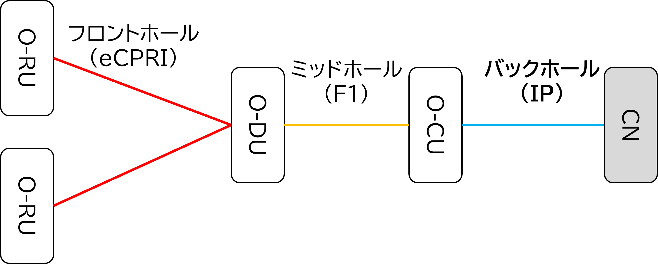 - 規格上、理論上の定義としては、BBUまたはO-CUからコアネットワークまでがバックホール
