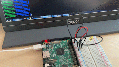ピンのレイアウトは、前述の公式サイトにも記載がありますので、それを参照してください。ちなみに、GPIO 14は物理ピン番号の8番なので、右の上から4番目、GNDは何カ所かありますが、今回はわかりやすいためGPIO 14の一つ上の物理ピン6番を使用しています。