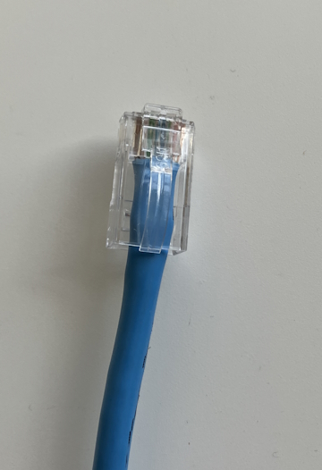 LANケーブルは一度は見たことがあると思います。LANケーブルは一般的に電気コードよりも太くて、ごわごわとしたケーブルですが、ちょっと高級なものだと「フラットケーブル」といって、薄い板状のケーブルの場合もあります。両端は通称RJ-45と呼ばれるプラスチックのコネクタが付いています。LANケーブルのこのコネクタをユーザー機器についているLANポートと呼ばれる口に刺せば、通信ができるようになります。