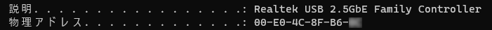 さて、PCやTVの場合はどうしたらいいでしょう?PCやTVに住所にあれば便利ですよね?って、実はあるんですよ、PCにもTVにも住所が。というか、インターネットで繋がる機器、例えば、PCやスマホだけでなくプレステのようなゲーム機だろうが、ラズパイのような小型機だろうが、たまごっちUniのようなオモチャであろうが、すべてに住所がついているんです。知ってました?全ての機器に付けられるその機器の住所のことをMACアドレスと呼んでいます。そんな住所みたことないって人もいるかも知れません。もし、あなたがWindows PCを持っているならば、ターミナル(コマンドプロンプト)を起動してipconfig /allと打ってみてください。こんな表示があるはずです。