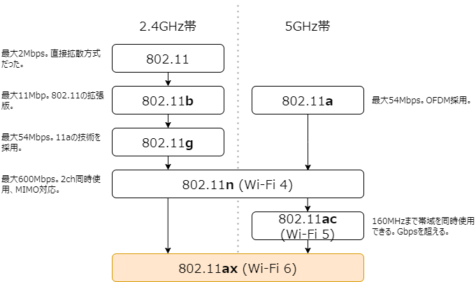 802.11シリーズの無線規格の流れ
