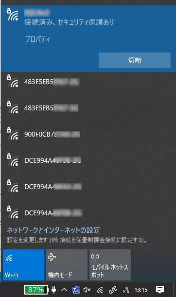 さて、具体的な説明に入ります。最初はSSIDの話です。Windowsの話で申し訳ないですが、Wi-Fiを使用するときタスクバー右の無線LANマークを押すと、次のような接続候補Wi-Fiネットワーク一覧が出てくるのをご存じでしょうか?
