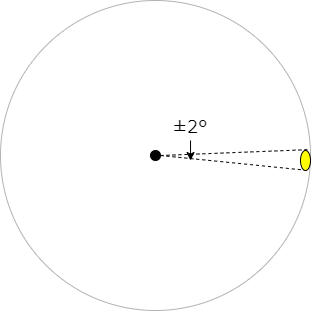 これを踏まえて、アンテナの性能というものを考えてみます。仮に、真正面の垂直、水平方向とも±2度しか電波が飛ばない、それ以外は一切電波が出ないアンテナがあるとします。物理的に「目的方向以外に一切電波が漏れないアンテナ」は存在しないのですが、あくまで”理論上”の話です。