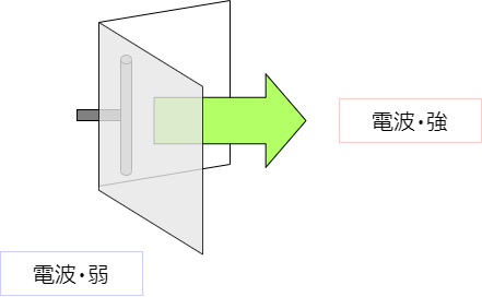 さて、電波の発生原理から、ある程度指向性が付くことはわかりました。が、発生原理による指向性はさほど高くありません。そのため、指向性の高いアンテナを作るためには、更に指向性を上げる手段がとられます。