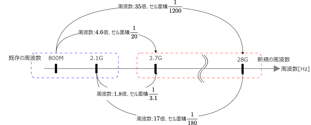 セルを小さくして、通信容量を稼ぐ方法はお金がかかるからやりたくない。だから、帯域幅を増やすことで通信容量を稼ぐ。しかし、帯域幅を増やすには、高い周波数にしなくてはいけない、そういったロジックでありました。