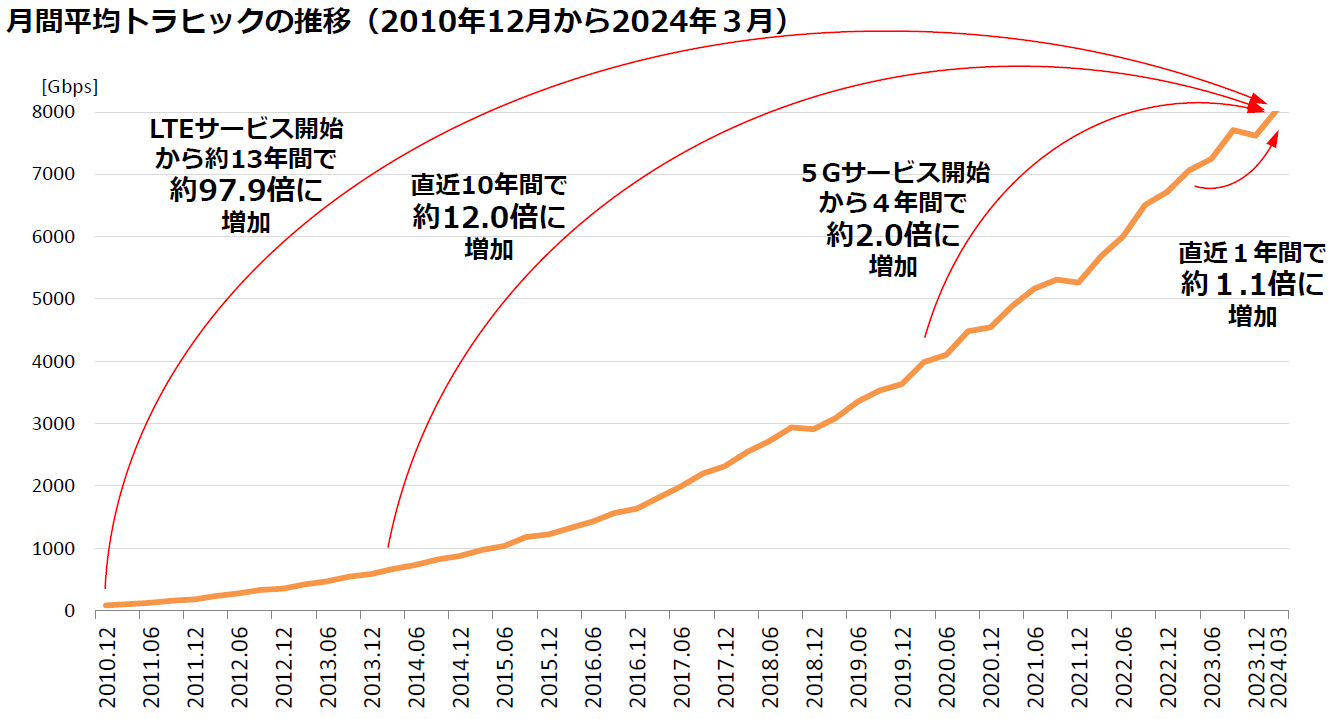出典:総務省 「移動通信トラヒックの現状(令和6年3月)」