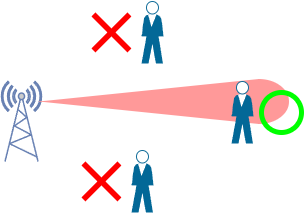 ただ、指向性を上げることと、電波の飛ぶ角度を広げられないことは、同時には達成できないだけで、時間をずらせば達成できるというのがビームフォーミングの考え方です。ちょっと、わかりにくい言い方になっちゃいましたけど、要するに、指向性はそのままに、時間によって指向性の向きを変えれば良いのでは?ということです。もちろん、アンテナの指向性が向いている時にしか通信できませんが、データ通信なら常時通信している必要は無いし、自分の順番の時だけアンテナの指向性が自分へ向いていればよいのですから。