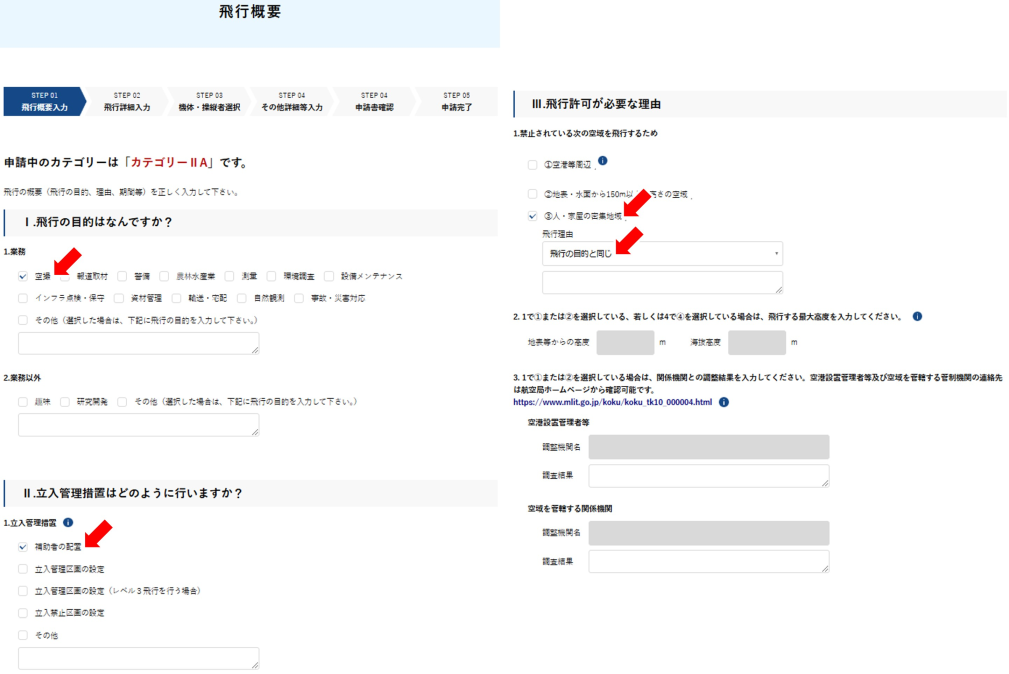 飛行申請を行うため、簡易カテゴリー判定を行います。