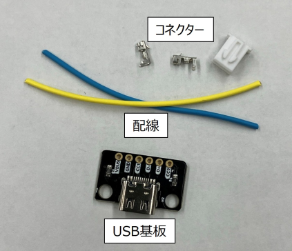 接続基板側の部品実装が完了したので、次に電力供給側となるUSB Type-C基板に対して配線とコネクターを実装します。