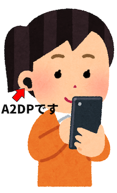 いよいよ本題であるオーディオの話題に入ります。現在、スマートフォンで最も使われているプロファイルといえばA2DP(Advanced Audio Distribution Profile)だと思います。A2DPは音楽を聴くためのプロファイルで、今売られているほぼ全てのBluetooth接続のイヤホン・ヘッドホンはA2DPに対応しているはず※3です。ちなみに、A2DPは音楽を「聴く」用途向けと思われがちですが、実は(対応製品は少ないですが)カラオケ等の「マイク」のようなものへの適用も想定されています。