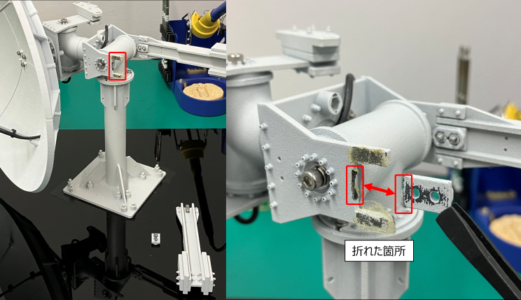 それでは本題ですが、宇宙関係の展示会には過去記事で紹介した、自作パラボラアンテナの模型を活用しており、今回も展示予定です。しかし、色々持ち出しているとトラブルも発生するわけで、いつの間にか部品が折れてしまいました。接着剤で補修して使い続けていましたが、修理用のお金を確保したということで部品交換を行うことになりました。
