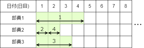 | 作業日数 | 4 | 1 | 3 | 1 | 3 | 4 | 2 | 4 | 3 |