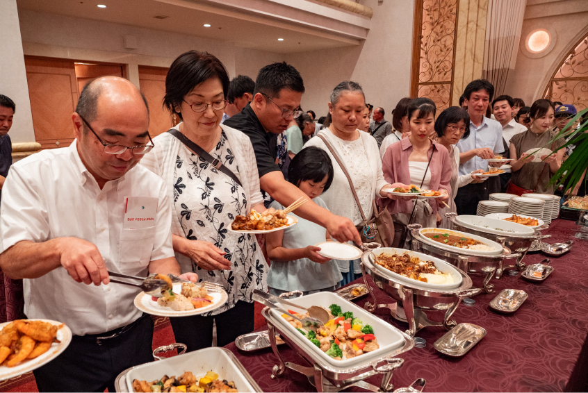 三技協グループ全体で行われる「サンフェスタ」は、社員や家族との親睦イベントとして、横浜を中心に全国の拠点で毎年一斉に開催されています。ハイクラスのホテルなど非日常の空間で美味しい食事と趣向を凝らしたアトラクションで盛り上がり、大勢の社員が家族と共に参加しています。